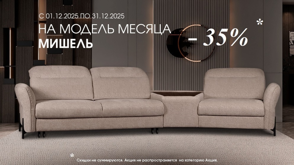 Диван месяца Мишель со скидкой 35% в Заказ в любой комплектации и в любом облицовочном материале. Подробности уточняйте в фирменном салоне Unisof в ТЦ "Dommer".